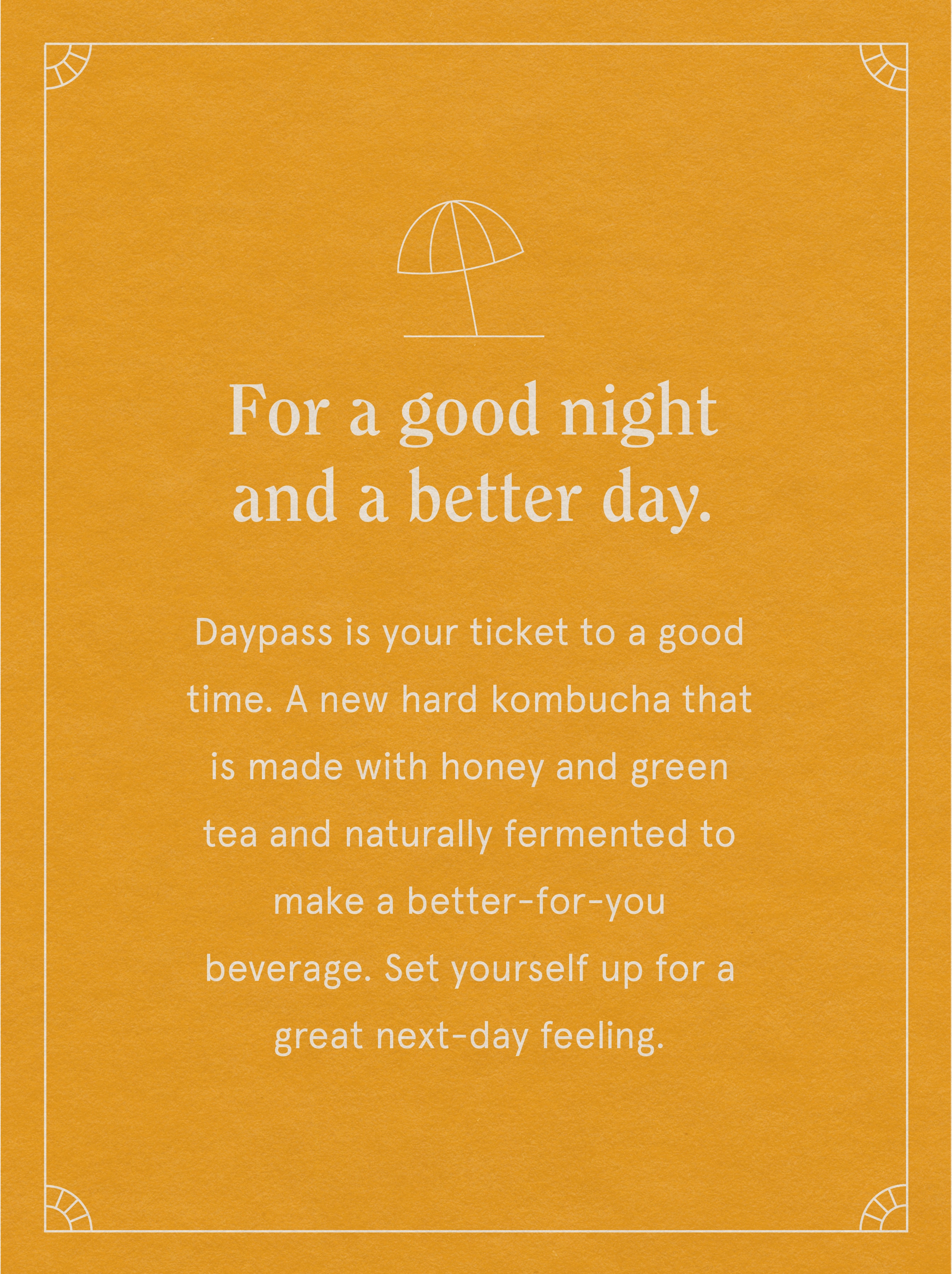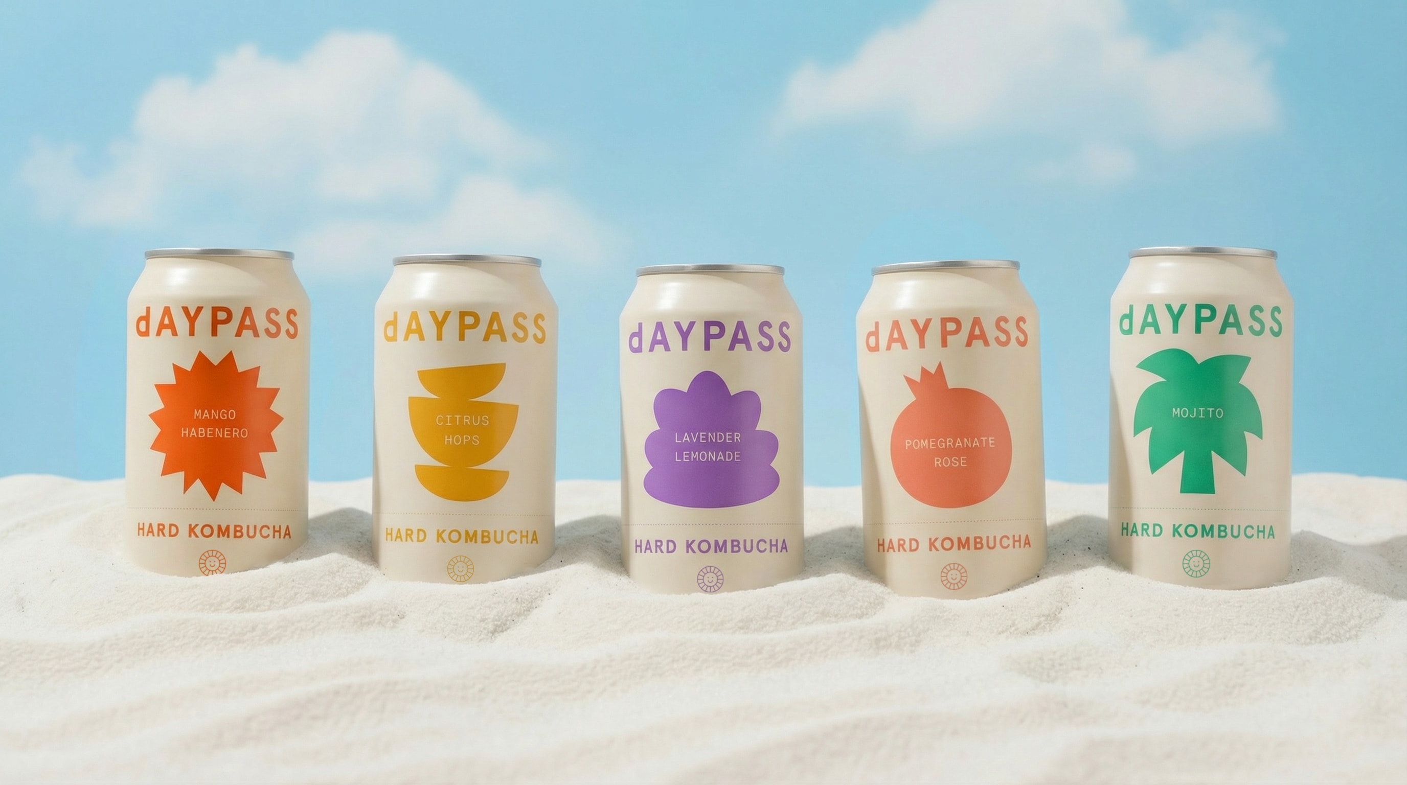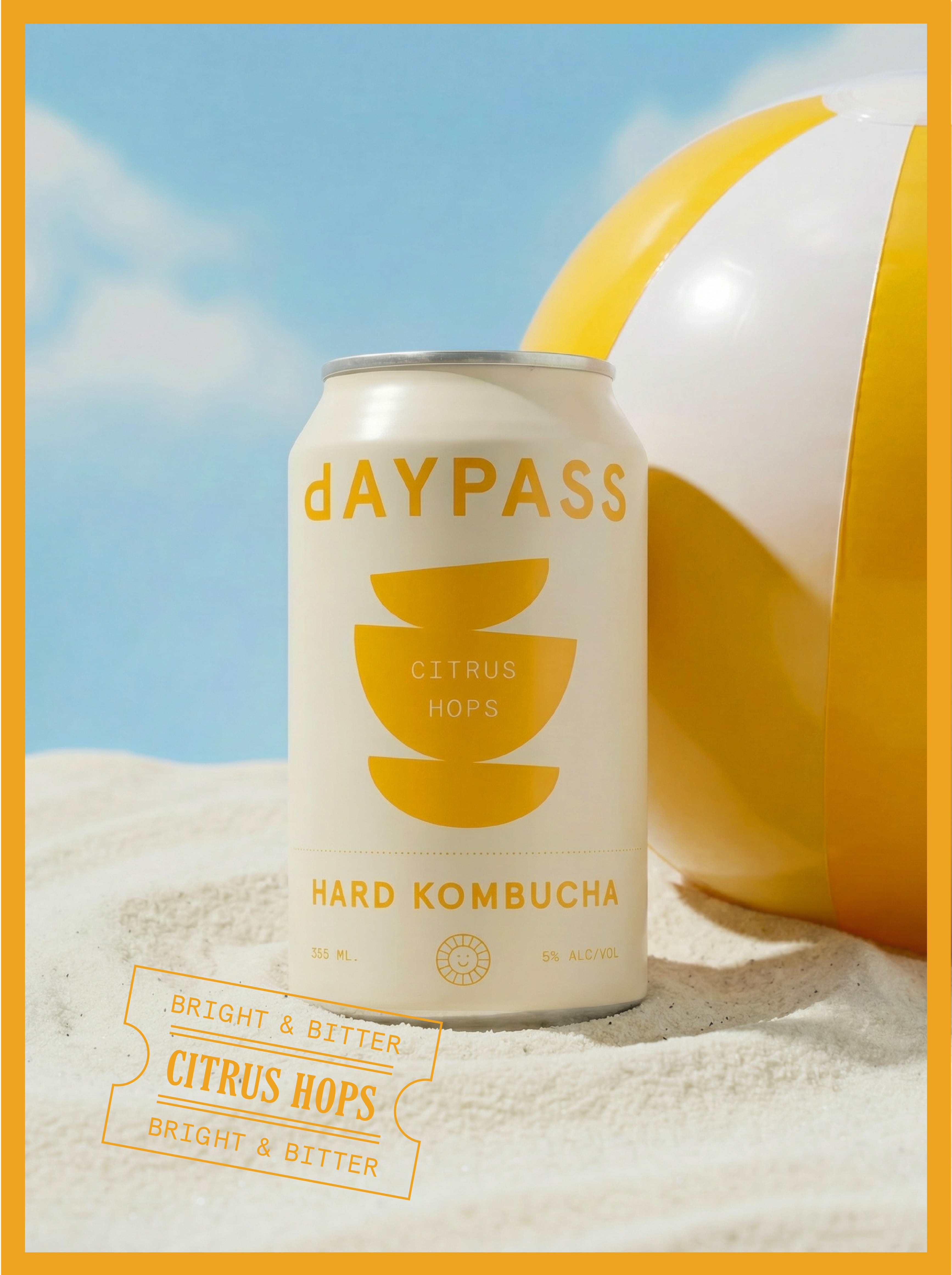 Day Pass is a hard kombucha line out of Kelowna, BC, made with green tea, honey, and just the right amount of sunshine. We partnered on branding and packaging for a multi-sku system, building a bright, punchy identity centered around the idea of “a good night and a better day.”